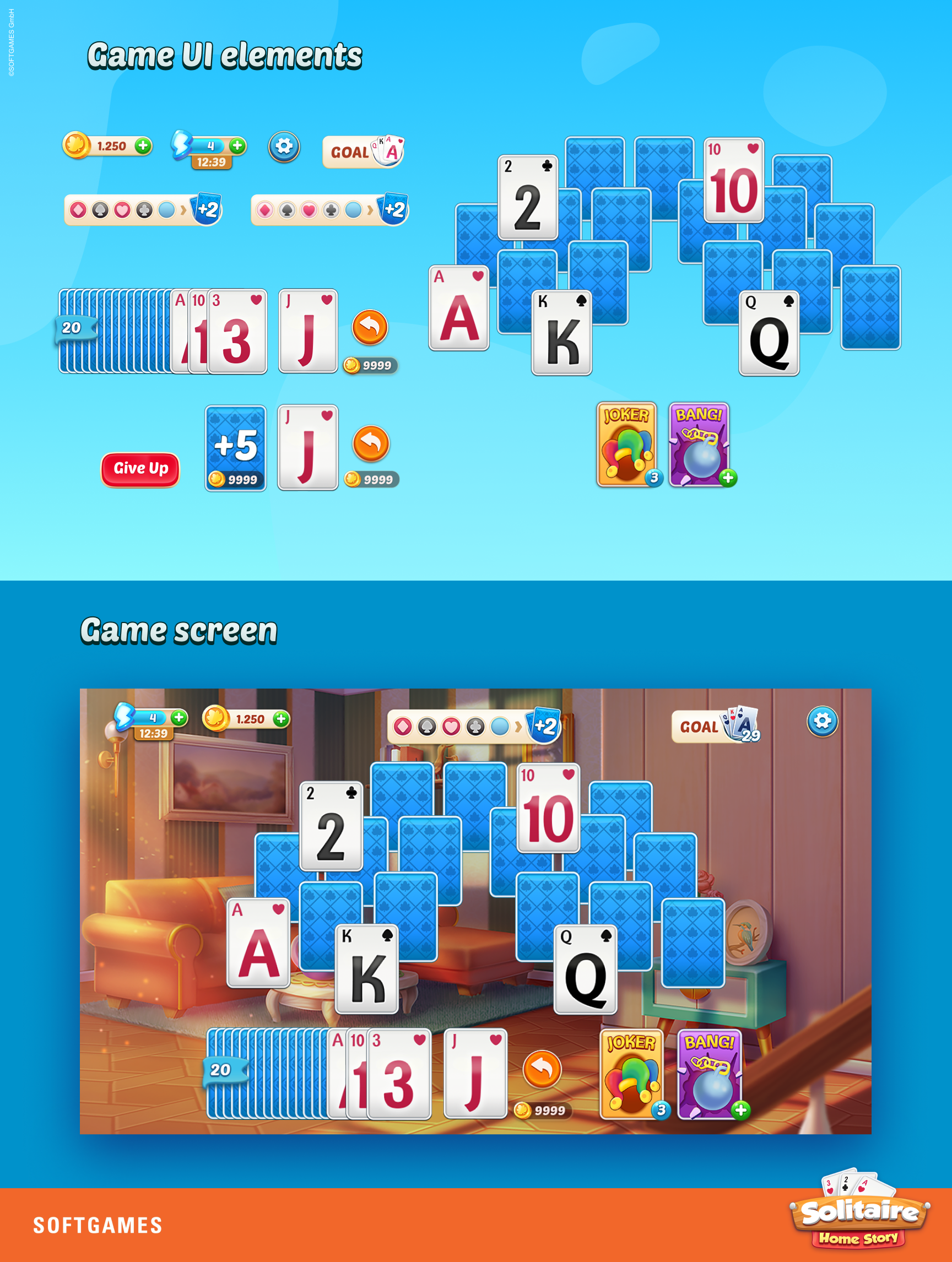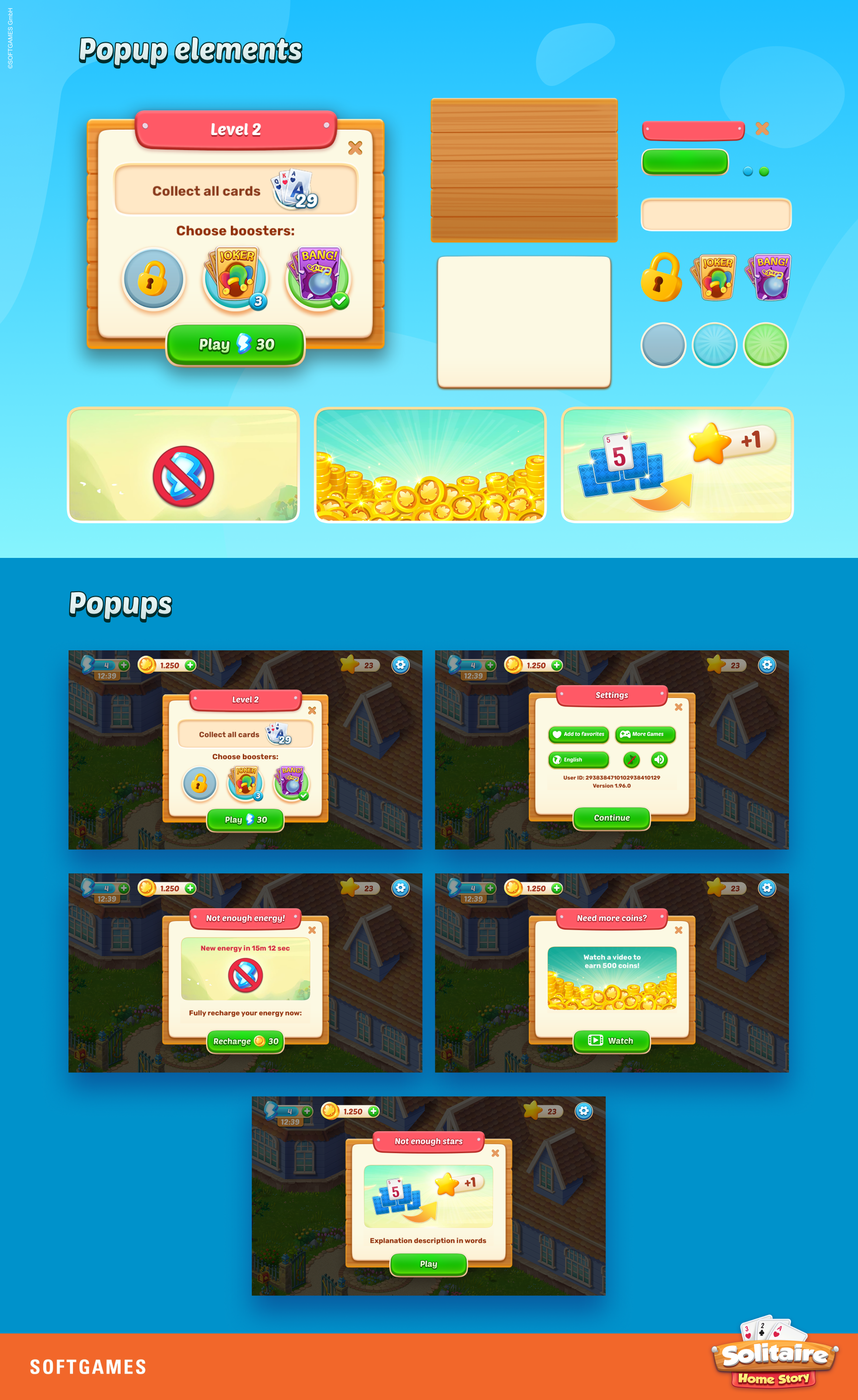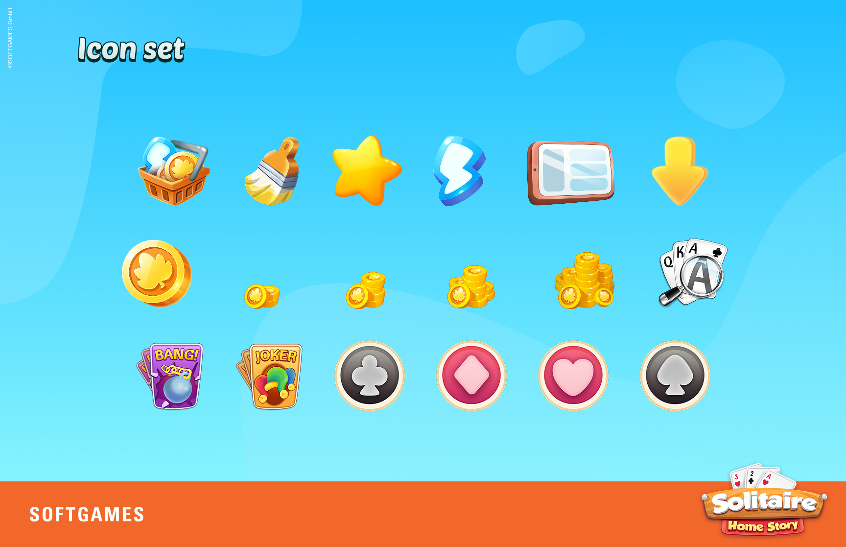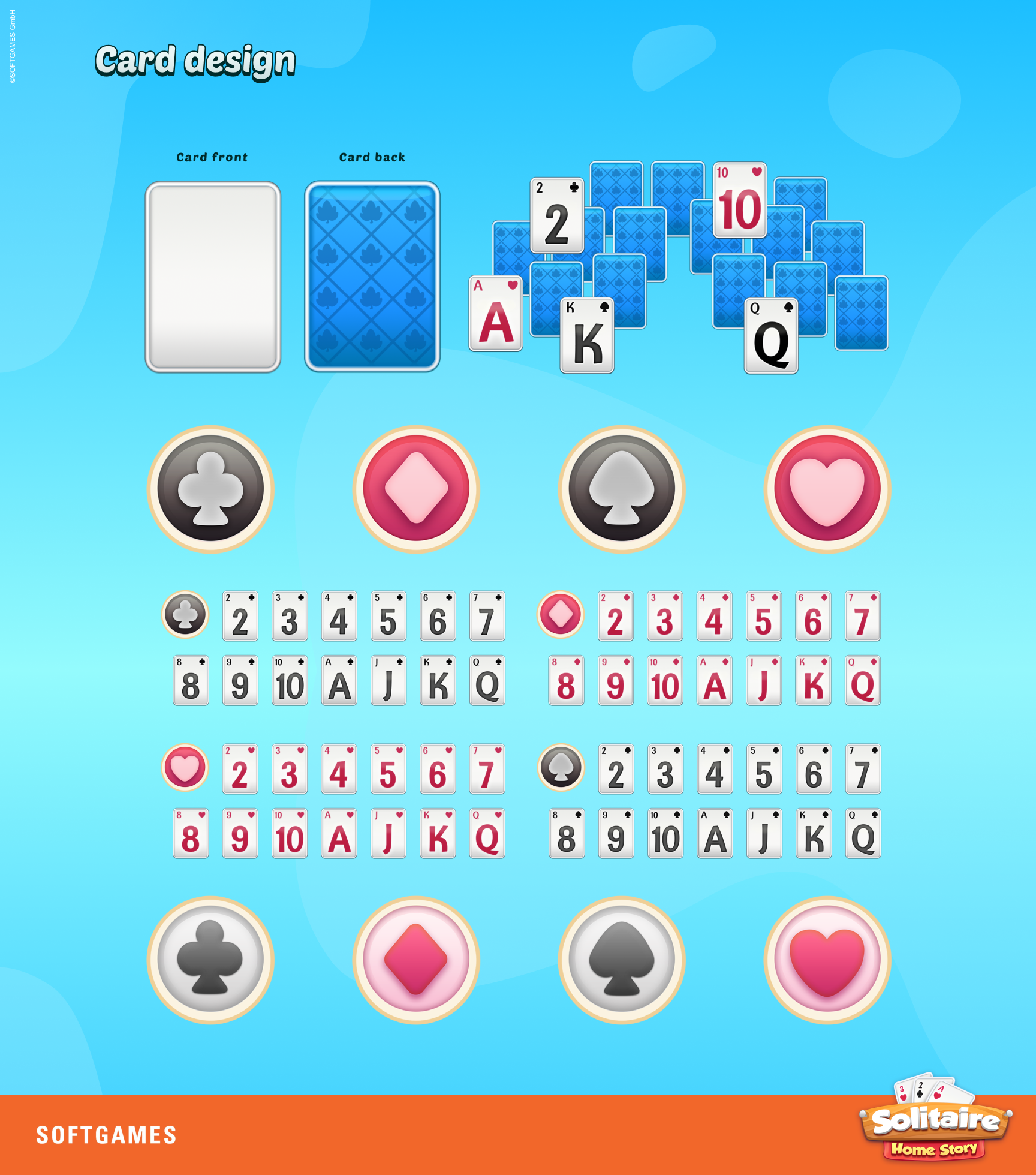 Drawing from existing UX wireframes, I developed a full suite of 2D flat icons, established the shape language and color system, and designed the complete card set—both front and back—to ensure a consistent and intuitive player experience.